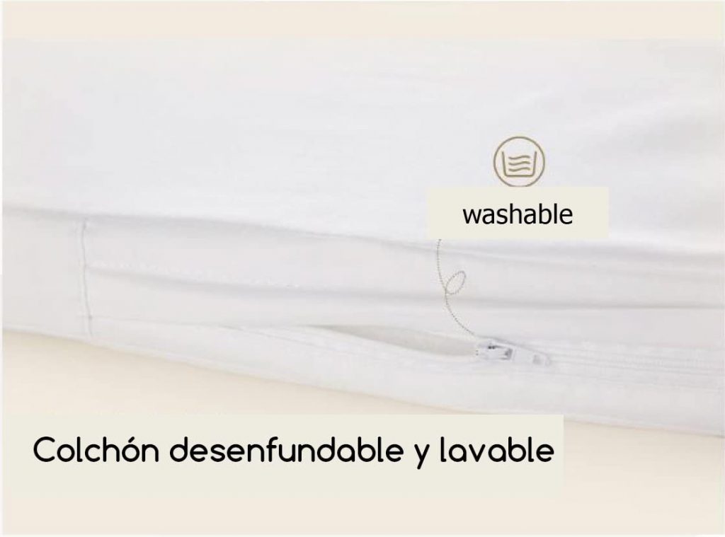 - Limpieza fácil: porque con un bebé en la cama puede pasar cualquier cosa, es necesario que todas las piezas y telas de la minicuna de colecho sean fácilmente lavables. Y esto es así porque todo se desmonta con un juego de cremalleras.